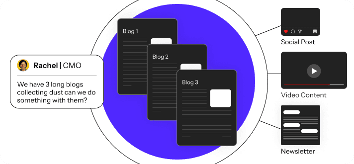 Turn internal notes, webinars, or briefs into polished, multi-format content.